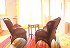 Die über den gleichen Treppenaufgang in der Scheune erschlossene kleine separate Ferienwohnung hat noch einmal einen geräumigen Wohn-/Schlafraum mit Doppelbett und Sesseln, daneben ein modernes Duschbad sowie eine Wohnküche auf 45 m² - alles ausgestattet mit kuscheliger Fußbodenheizung.